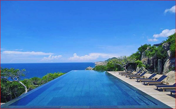 Một góc nhỏ của biển Nha Trang nhìn từ bể bơi khách sạn dưới ống kính của ông xã Louis Nguyễn.