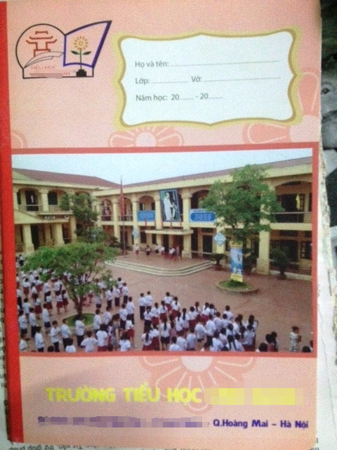 Những cuốn vở ghi có in hình nhà trường được bán với giá "cắt cổ" cho học sinh