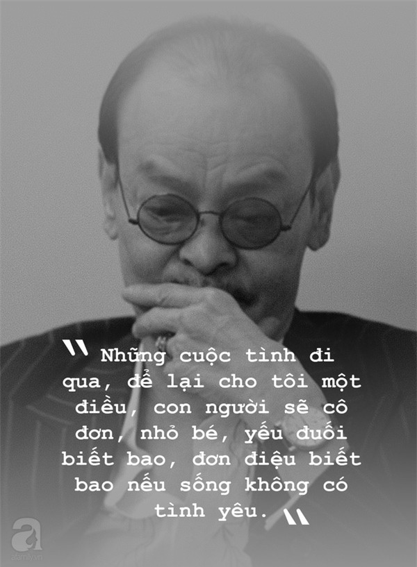 Ông nói về cuộc sống "một mình": "Trong thân phận của mình, tôi tìm được sự lý giải về tình yêu cuộc sống, tình yêu lứa đôi. Chưa chắc hai người ở cạnh nhau đã có hạnh phúc, đã hết cô đơn. Nhưng nếu cuộc sống chỉ có một người và người này vẫn nhớ về người kia, vẫn cảm thấy người kia luôn hiện diện thì sẽ không cảm thấy cô đơn”.