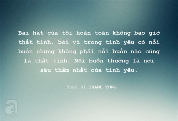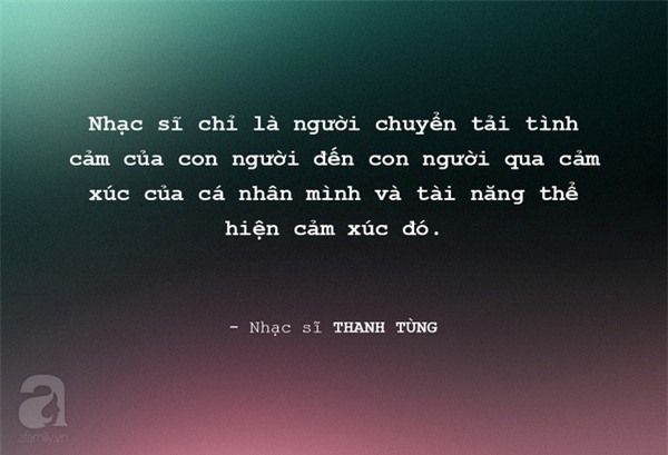 Ngẫm lại những tình yêu đã qua, nhạc sĩ Thanh Tùng tâm sự: “Những cuộc tình đi qua, để lại cho tôi một điều, con người sẽ cô đơn, nhỏ bé, yếu đuối biết bao, đơn điệu biết bao nếu sống không có tình yêu”.