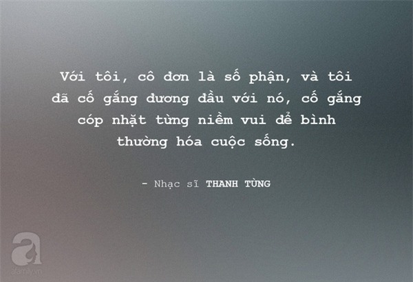 Nhạc sĩ Thanh Tùng tự nhận nỗi cô đơn gắn liền với số phận của ông, và ông luôn cố gắng đương đầu với nó.