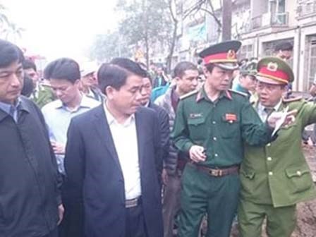 Chiều 19/3, Chủ tịch UBND TP Hà Nội Nguyễn Đức Chung đã đến hiện trường vụ nổ thị sát tình hình, chia sẻ nỗi đau với gia đình các nạn nhân