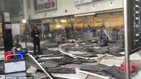 Cảnh tượng hoang tàn tại sân bay Brussels.