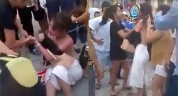 Người vợ mặc áo vàng cùng bạn đi cùng liên tiếp đánh đập tình địch của chồng...