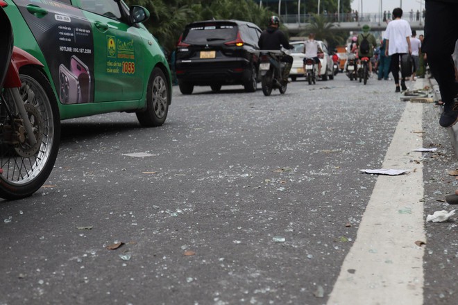 Nhiều mảnh kính vỡ vương vãi khắp mặt đường