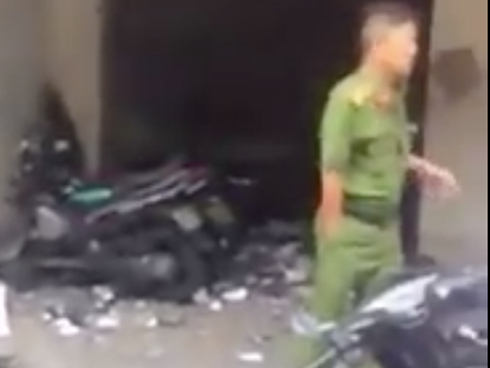 Hai thanh nghi ném chất nổ vào trụ sở Công an P.12, Q.Tân Bình bị camera ghi lại