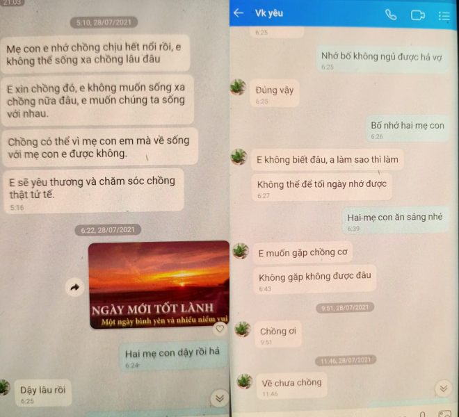"Mẹ con em nhớ chồng chịu hết nổi rồi, em không thể sống xa chồng lâu đâu. Em xin chồng đó, em không muốn sống xa chồng nữa. Em muốn chúng ta sống với nhau. Chồng có thể vì mẹ con em mà về sống với mẹ con em được không. Em sẽ yêu thương và chăm sóc chồng thật tử tế", kẻ thứ ba viết.
