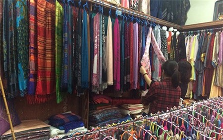 một cửa hàng kinh doanh lụa trong làng Vạn Phúc cho hay, đa số cửa hàng