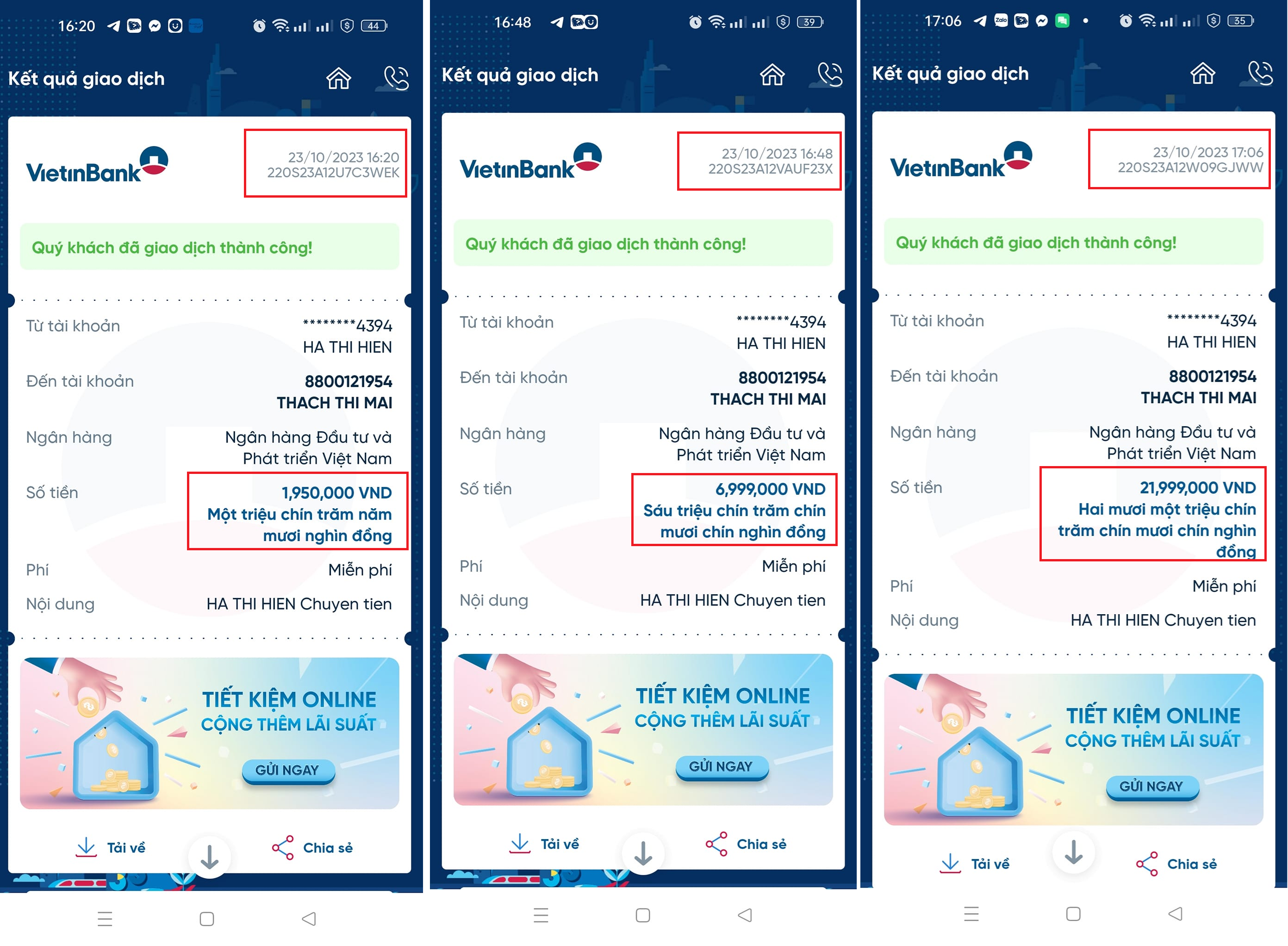 Trong vòng 5 tiếng, Hiển đã chuyển hơn 300 triệu đồng cho công ty lừa đảo