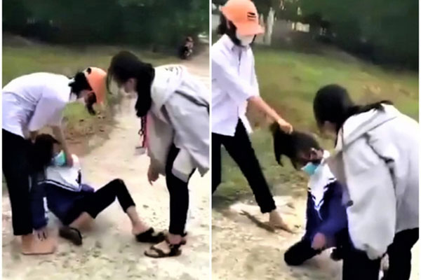 Hình ảnh cắt từ clip Thủy Bi tranh cãi việc con gái bị bạo lực học đường