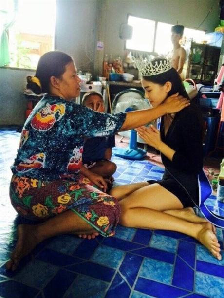 Khoảnh khắc tân Hoa hậu Thái Lan quỳ xuống chân người mẹ của mình đã làm lay động lòng người.