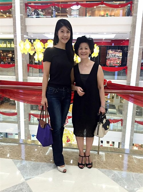Chiều cao "đáng nể" của bà xã tương lai Trương Thế Vinh. Trong ảnh, Đông Phương ăn vận giản dị đi mua sắm cùng mẹ ruột.