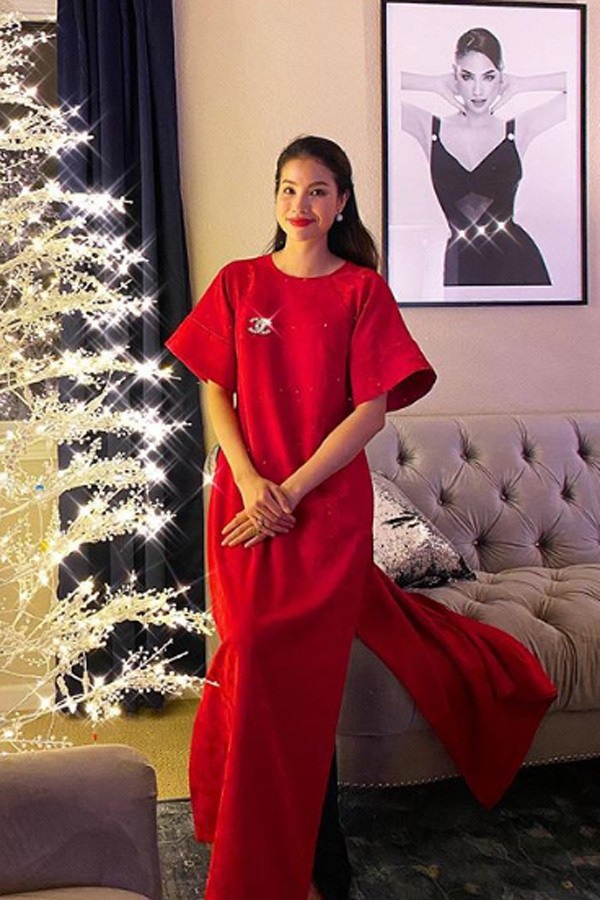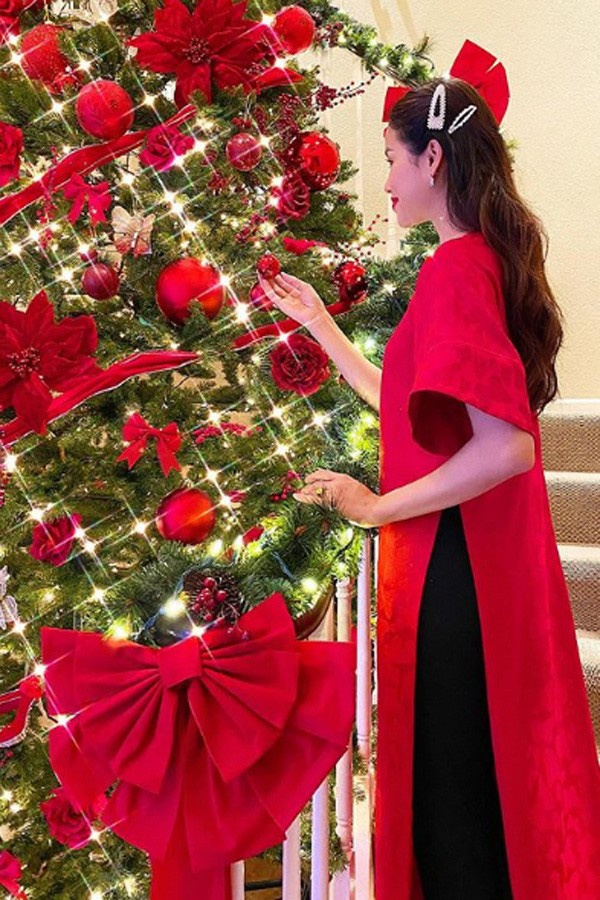Hoa hậu Phạm Hương diện đồ rực rỡ trong ngày giáng sinh.