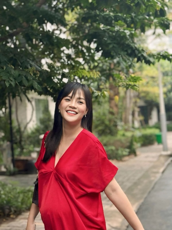Ở những tháng gần cuối thai kỳ, Thu Quỳnh vẫn giữ được nhan sắc trẻ trung, xinh đẹp. Ngoài vòng 2 lớn dần, vóc dáng của Thu Quỳnh không có nhiều thay đổi.