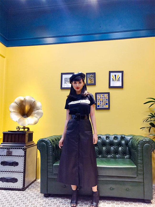 Bà mẹ 2 con khoe được vẻ trẻ trung, sành điệu khi diện chân váy đen kết hợp cùng áo Gucci đắt giá. Vóc dáng của Tâm Tít đã quá đỗi thon gọn, nhìn Tâm Tít thế này ai nghĩ được cô đã là mẹ hai con, thâm chí còn vừa sinh xong.