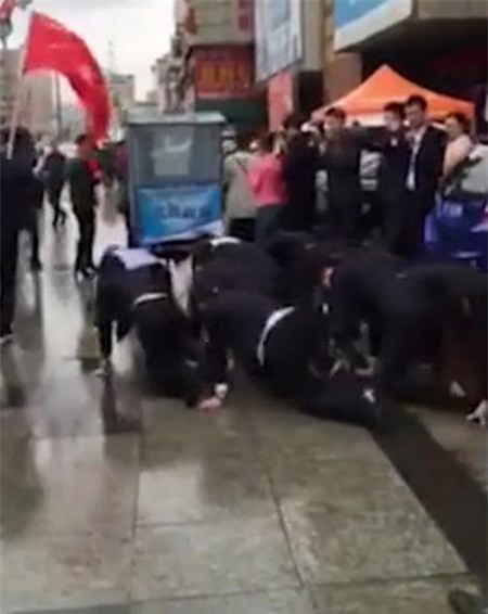 Các nhân viên của một công ty ở Cát Lâm, Trung Quốc đã bò trên đường vì không đạt mục tiêu bán hàng |