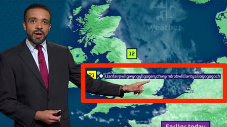 Với độ dài tới 58 chữ cái, ngôi làng Llanfairpwllgwyngyllgogerychwyrndrobwllllantysiliogogogoch nằm ở Tây bắc xứ Wales chiếm ngôi vị quán quân trong số những địa danh tên dài nhất trên lãnh thổ Vương quốc anh và đứng thứ hai trên thế giới. Tuy nhiên, thử thách này không làm khó được Liam Dutton. "Anh chàng thời tiết" đã đọc trôi chảy cả dòng chữ một cách trôi chảy, không hề va vấp một chút nào và gây kinh ngạc cho toàn thể người theo dõi chương trình.