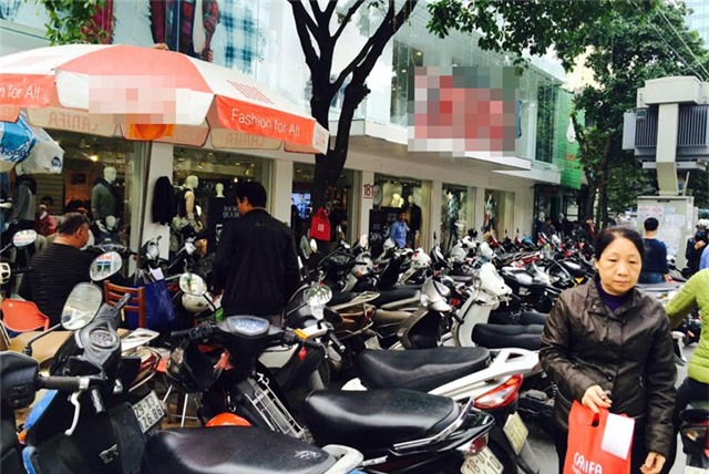 Tại một cửa hàng thời trang ở Giảng Võ, bãi trông giữ xe đã chật kín ngay từ lúc mở cửa. Nhân viên trông giữ xe tại đây cho biết, để mua được hàng giảm giá, rất nhiều người còn đến sớm trước cả giờ cửa hàng mở cửa để xếp hàng. Họ cũng liên tục phải từ chối khách vì bãi giữ xe luôn quá tải.