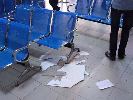 Mảng kim loại trên trần bệnh viện rơi trúng đầu, cháu bé nhập viện cấp cứu