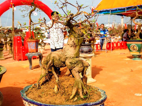 Gốc cây sần sùi, rêu phong. Trên thân từng cành cây được tạo dáng uyển chuyển rất tinh tế.