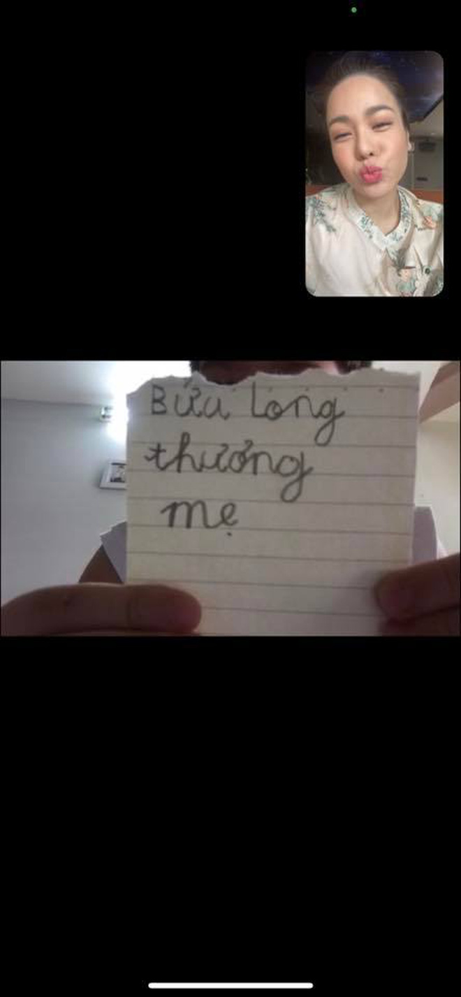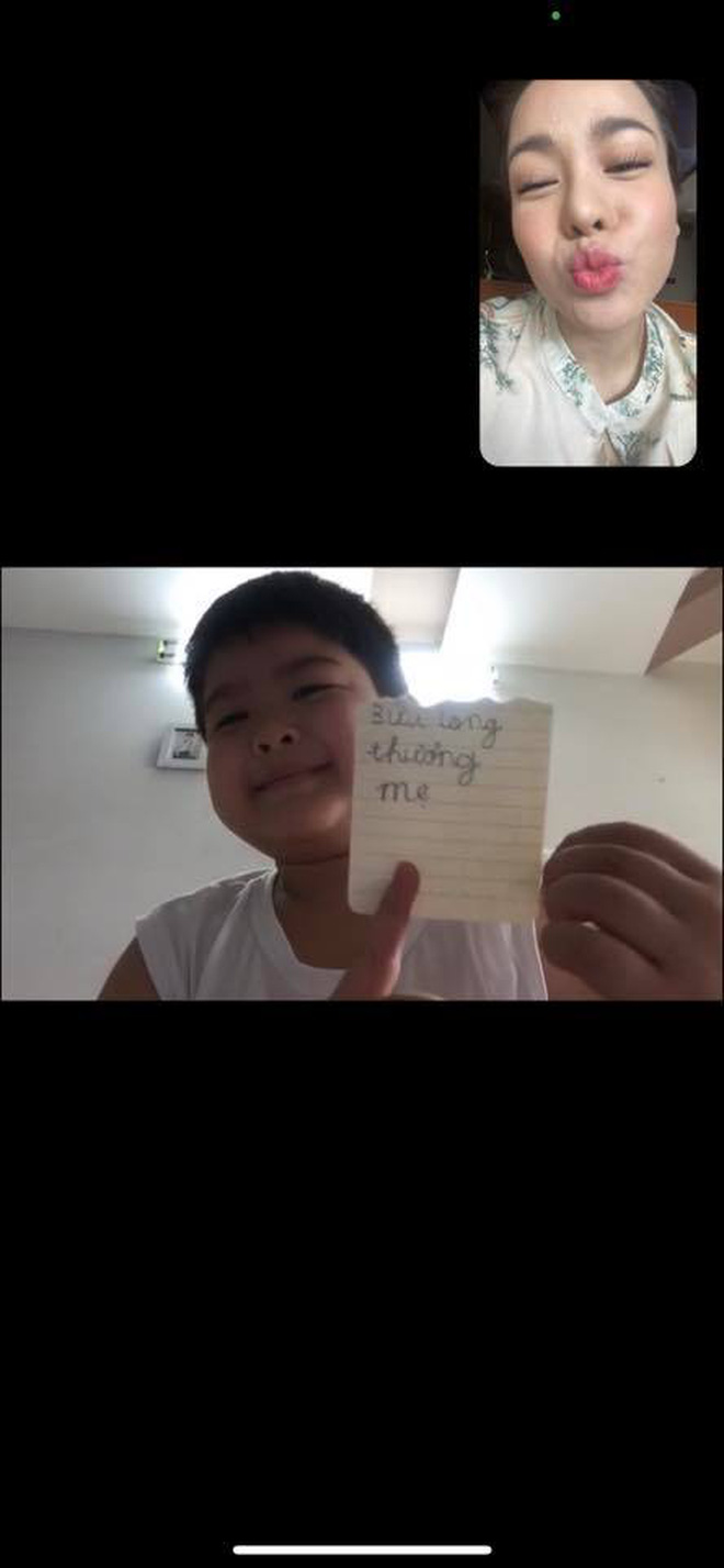 Mới đây, nữ ca sĩ đã đăng tải hình ảnh gọi video với bé Tin lên trang cá nhân. Dù chỉ trò chuyện qua màn hình điện thoại, nhưng những hành động dễ thương của nhóc tỳ cũng đủ khiến Nhật Kim Anh nghẹn ngào xúc động. Theo đó, cậu bé đã viết dòng chữ "Bửu Long thương mẹ", làm cô không kìm được nước mắt.