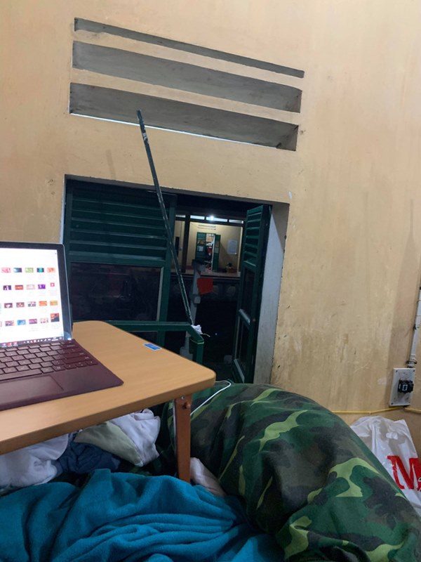 Châu nói: "Mọi người thăm hỏi kỹ lắm, mỗi ngày kiểm tra thân nhiệt 2 lần, xịt khử trùng trong phòng và ngoài hành lang rồi còn được ăn 3 bữa một ngày nữa, có cả số hotline để liên hệ, mình nghĩ mọi người ai cũng đang làm hết sức mình rồi! Mình nhớ hồi đầu bố mẹ lên gửi đồ, gặp một số sự cố về phương tiện di chuyển nên phải tới 6 rưỡi tối bố mẹ mới tới nơi. Lúc mình ra nhận đồ thì trời tối đen như mực, đứng cách bố mẹ tầm 200m nên không nhìn thấy gì hết, chỉ nghe giọng qua điện thoại thôi. Mình phải bật đèn flash vẫy bố mẹ, bố mẹ cũng bật đèn flash vẫy lại, cả 200m thấy mỗi 2 đèn flash nghĩ cũng thấy thương."