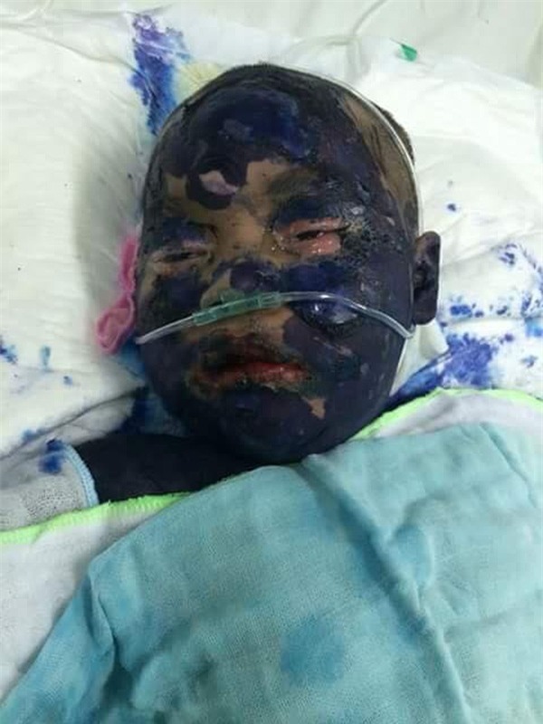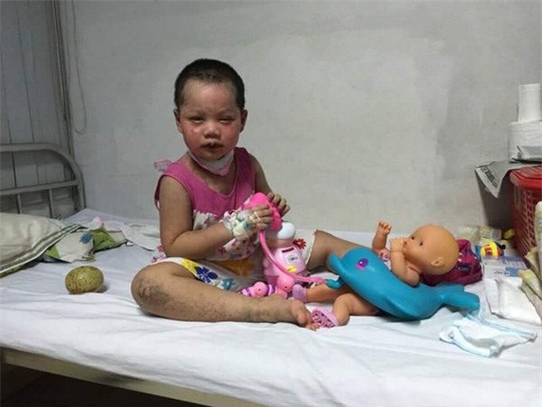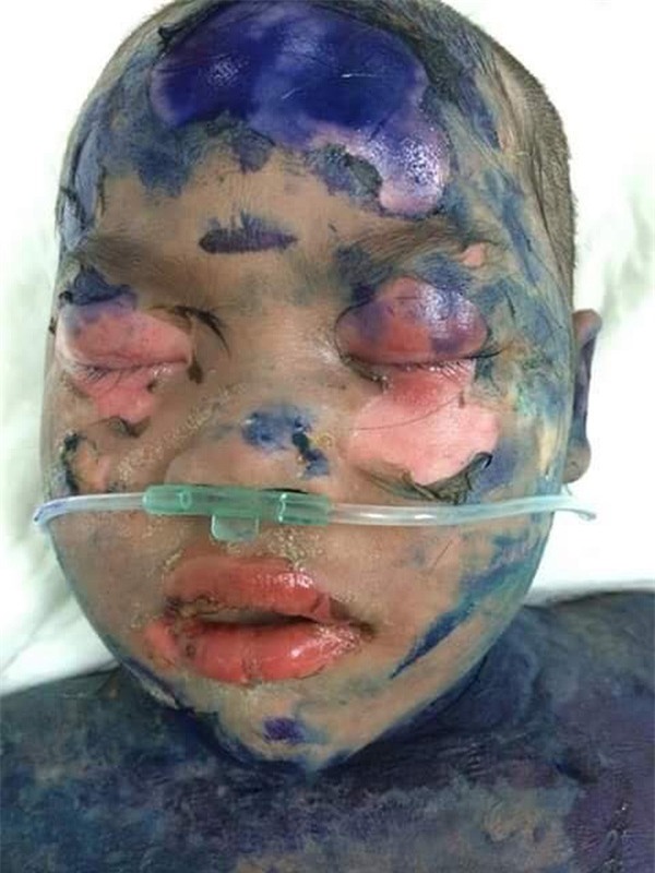 Môi con trợt khô, đóng vảy không thể hé mở, nhưng để làm vệ sinh sâu khoang miệng và bôi thuốc, cô y tá mỗi ngày cầm chiếc kéo dài đầu kẹp bông luồn vào miệng con. Mỗi lần như vậy máu trong mồm con lại trào ra, thấm đẫm cả bịch bông, không ai cầm được nước mắt nhưng việc vẫn phải làm vì sự sinh tồn của con. Rồi đến lúc con phải bôi xanhmetilen tránh nhiễm trùng từ ngoài vào, lại một cuộc chiến nữa trên cơ thể bé nhỏ. Các cô y tá bật máy sưởi, cắm 3,4 kim tiêm vào bình nước muối, truyền thuốc gây mê cho con rồi tiến hành " tắm" hết lớp xanhmetilen cũ để bôi Lớp thuốc mới. Ngày nào cũng vậy các cô nhẹ nhàng thay rửa cho con thật nhanh nếu không hết thuốc con biết đau sẽ không làm được gì. Vất vả, tỉ mỉ và đau đớn vô cùng.