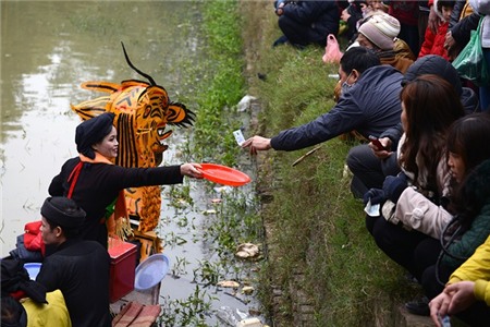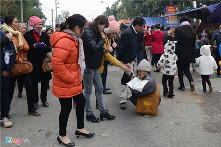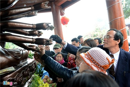 Lễ hội vùng Kinh Bắc sáng 12/2 có nhiều hình ảnh phản cảm khi du khách chen nhau tìm cách nhét tiền vào tay tượng Phật. Còn dưới hồ, các liền anh chị vẫn hát quan họ xin tiền.