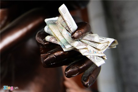 Suốt từ sáng sớm cho đến trưa, khu vực này luôn trong cảnh chen chúc người ra, vào, chủ yếu để được xoa tiền vào tượng.