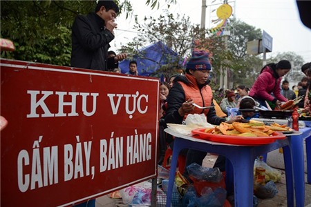 Ngoài ra, các hàng quán cũng bày la liệt hai bên đường và cả khu vực cấm.