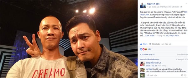 "Tối qua tới giờ trên mạng nóng vụ "VTV đấu tố" MC Phan Anh. Là người trong cuộc và cũng là người ủng hộ quan điểm của bạn ấy mình có vài lời như thế này: "Clip phát trên ti vi là biên tập, cắt cúp rất nhiều từ cuộc nói chuyện, tranh luận hơn 2 tiếng cho vừa khung 60 phút của họ. Có những thứ rất hay đáng nhẽ nên cho vào để cân bằng. Ví dụ như Phan Anh nói: "Tôi phải tin VTC chứ vì đó là nguồn tin chính thống, đài truyền hình nhà nước cũng như mọi người tin vào cái phóng sự... quét rau của VTV vậy...".
