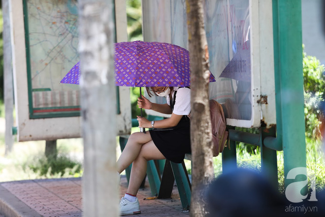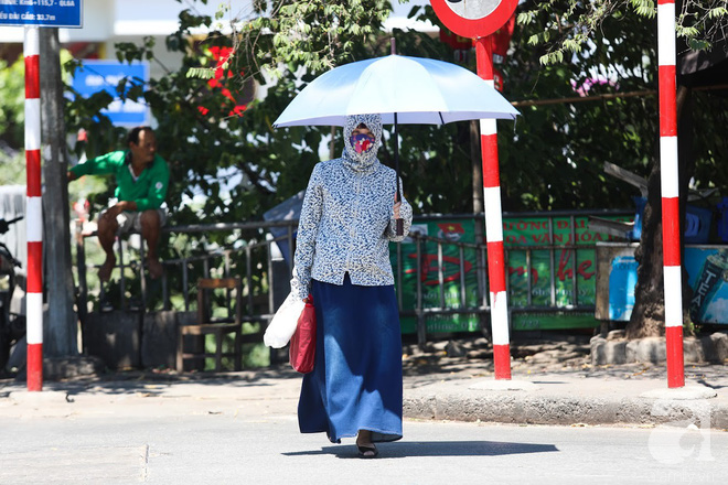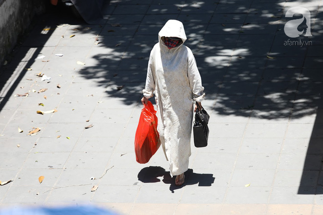 Trùm trên trùm dưới lại còn thêm cái ô nữa mà chắc cô ấy cũng đang vẫn than thầm là sao trời lại như đổ lửa như thế đấy.