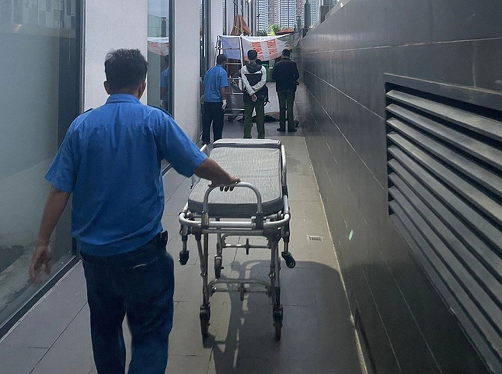 Hiện trường vụ chị H. rơi lầu chung cư tử vong (ảnh gia đình cung cấp)