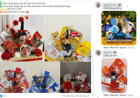 Dạo chợ mạng năm nay, chị em có thể dàng bắt gặp các bài đăng bán giỏ quà Tết đẹp mắt với giá siêu rẻ, chỉ từ 300 - 400K, thậm chí có loại chỉ 200K mà cũng có đủ các loại trà, bánh kẹo Hàn Quốc “xịn sò” và cả rượu vang cao cấp.