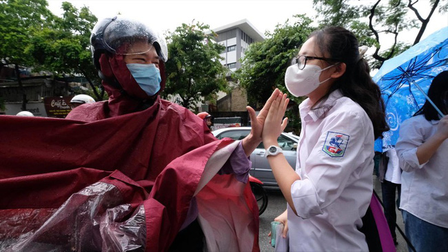 Con đã vào điểm thi, chị Hà Thị Tâm, nhà ở Ngũ Hiệp, Thanh Trì, Hà Nội vẫn nấn ná đứng ở cổng trường chưa muốn rời. Phải đến khi lực lượng công an đến nhắc nhở chị mới quay xe ra ngoài đường Ngọc Hồi để đứng đợi con. Chị Tâm chia sẻ năm nay các con thi vất vả, thiệt thòi hơn những năm trước, phải ôn tập trực tuyến nhưng không được giảm số môn thi như năm 2020.