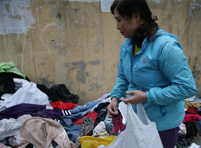 Chị Tâm người buôn đồng nát cho biết: "Chiếc áo len này còn tốt và đẹp quá, tôi ướm thấy khá vừa và đẹp nên sẽ nhận về diện Tết".