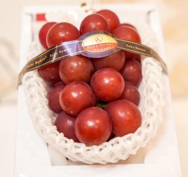 Đơn cử, tại hệ thống cửa hàng của Omiyage Fruits&More ở Hà Nội rao bán nho Ruby Roman Nhật Bản quả đỏ au bóng bẩy như những viên đá Ruby với giá 12 triệu đồng/chùm trọng lượng 1kg.