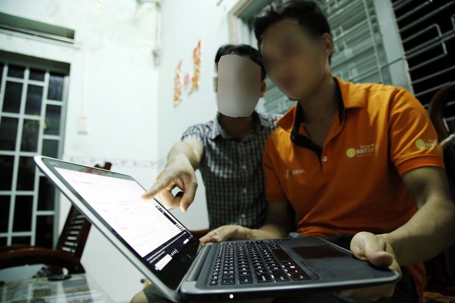 Một người chơi Bitcoin tại TP Bảo Lộc hướng dẫn một thanh niên mua đồng tiền ảo trên sàn giao dịch.