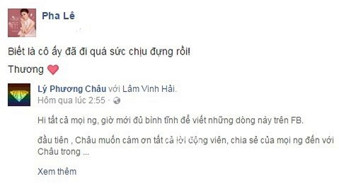 Không những cư dân mạng mà nhiều sao Việt như Pha Lê, Thu Phượng và stylist Nguyễn Thiện Khiêm cũng đã lên tiếng đồng cảm với vợ cũ Lâm Vinh Hải.
