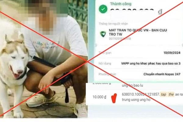 Nhiều trang thông tin giả mạo, lấy danh nghĩa là MTTQ Việt Nam huy động tiền ủng hộ đồng bào bị ảnh hưởng bởi cơn bão số 3