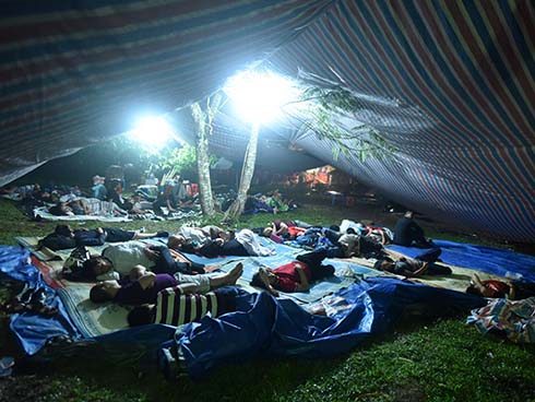 Có gia đình còn chuẩn bị chu đáo, cắp theo tấm chiếu để trải ra nghỉ ngơi trên núi.