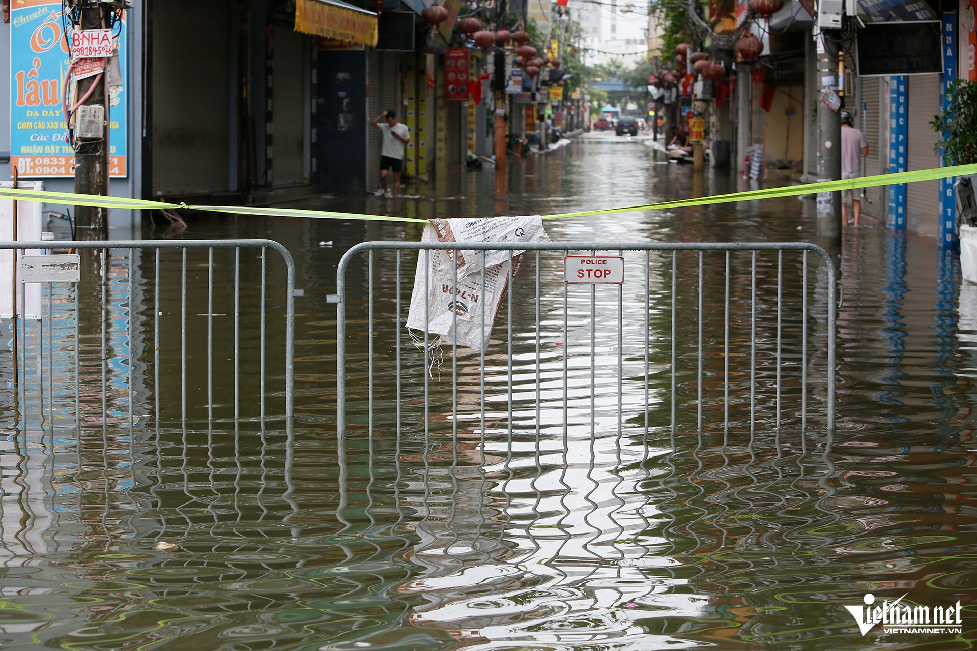 Một số khu dân cư ở lân cận vẫn ngập sâu, lực lượng chức năng đã dùng hàng rào phong tỏa, ngăn phương tiện đi vào để đảm bảo an toàn.