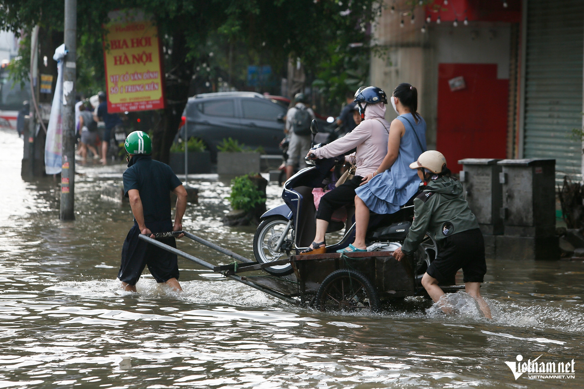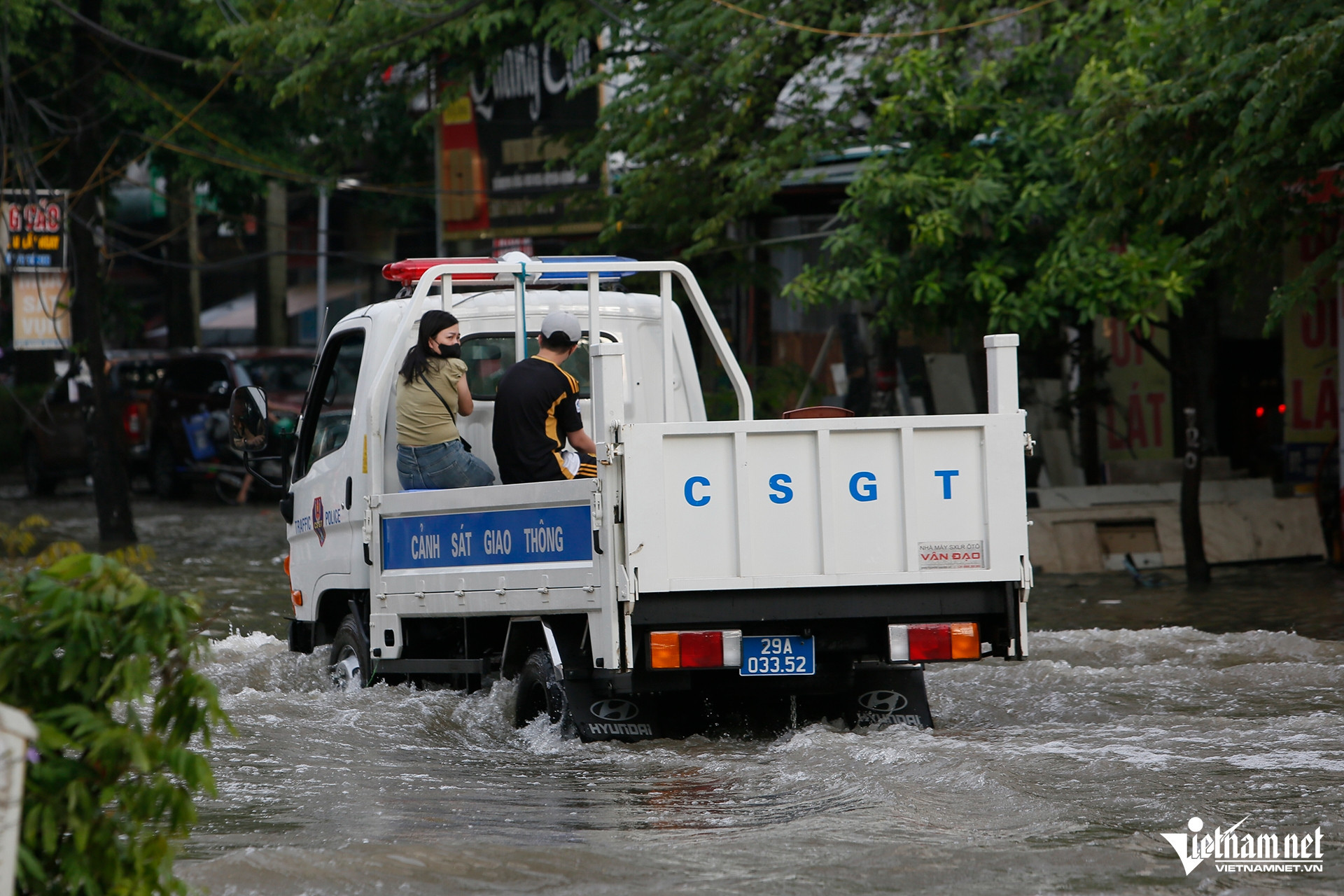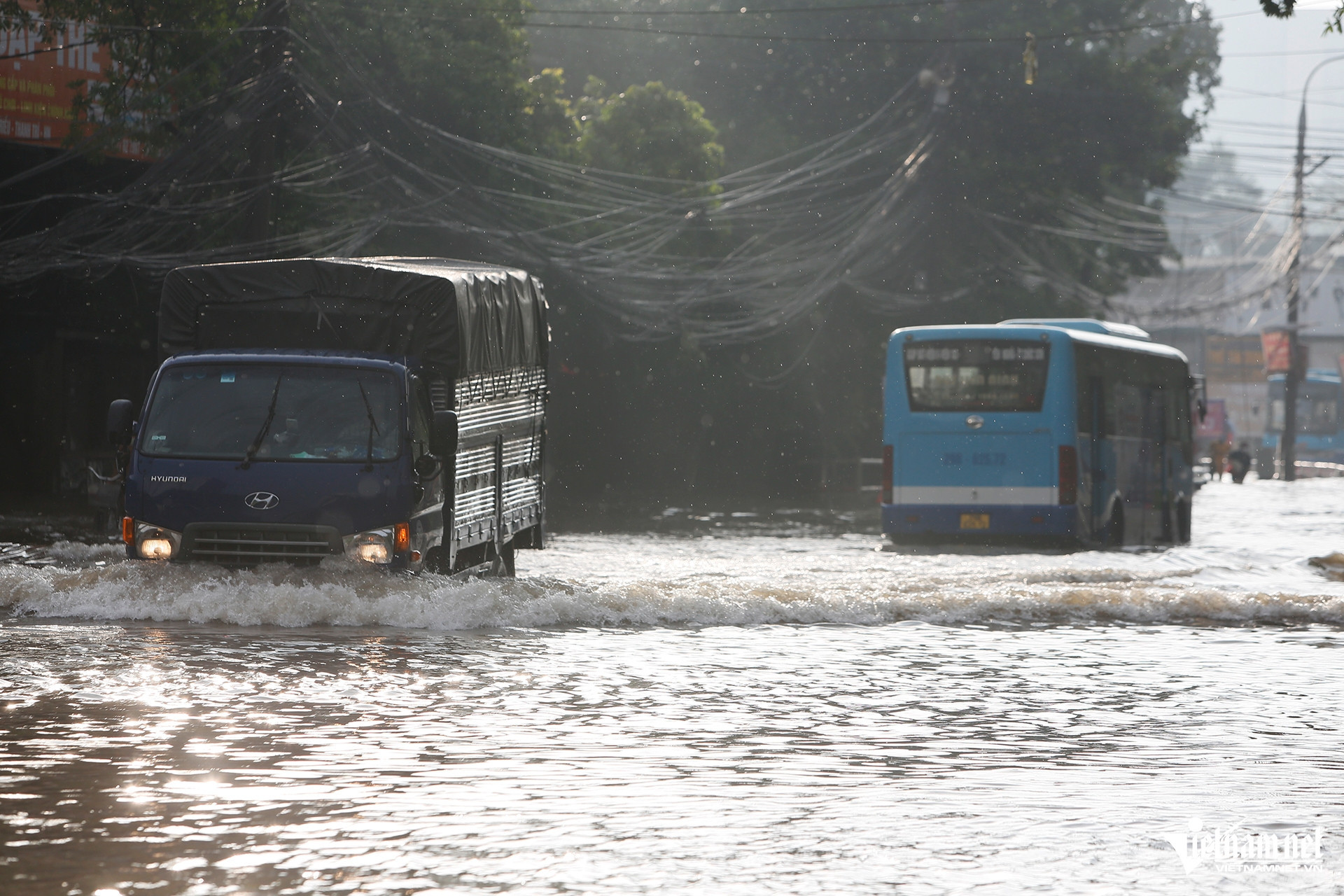 Chỉ có các loại xe tải, ô tô gầm cao, xe buýt mới có thể vượt qua đoạn ngập tại đây, tuy nhiên vẫn có xe bị chết máy phải "nằm" lại giữa đường.