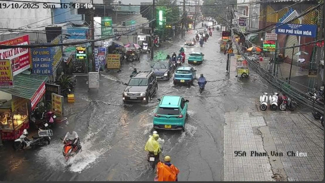 Lúc 16h ngày 19/10, mưa giông lớn trút xuống khu vực phía Tây Bắc TPHCM. Trận mưa kéo dài khoảng 1 giờ, lượng nước lớn đã vượt quá khả năng thoát của hệ thống cống rãnh, biến nhiều tuyến đường thành "sông".