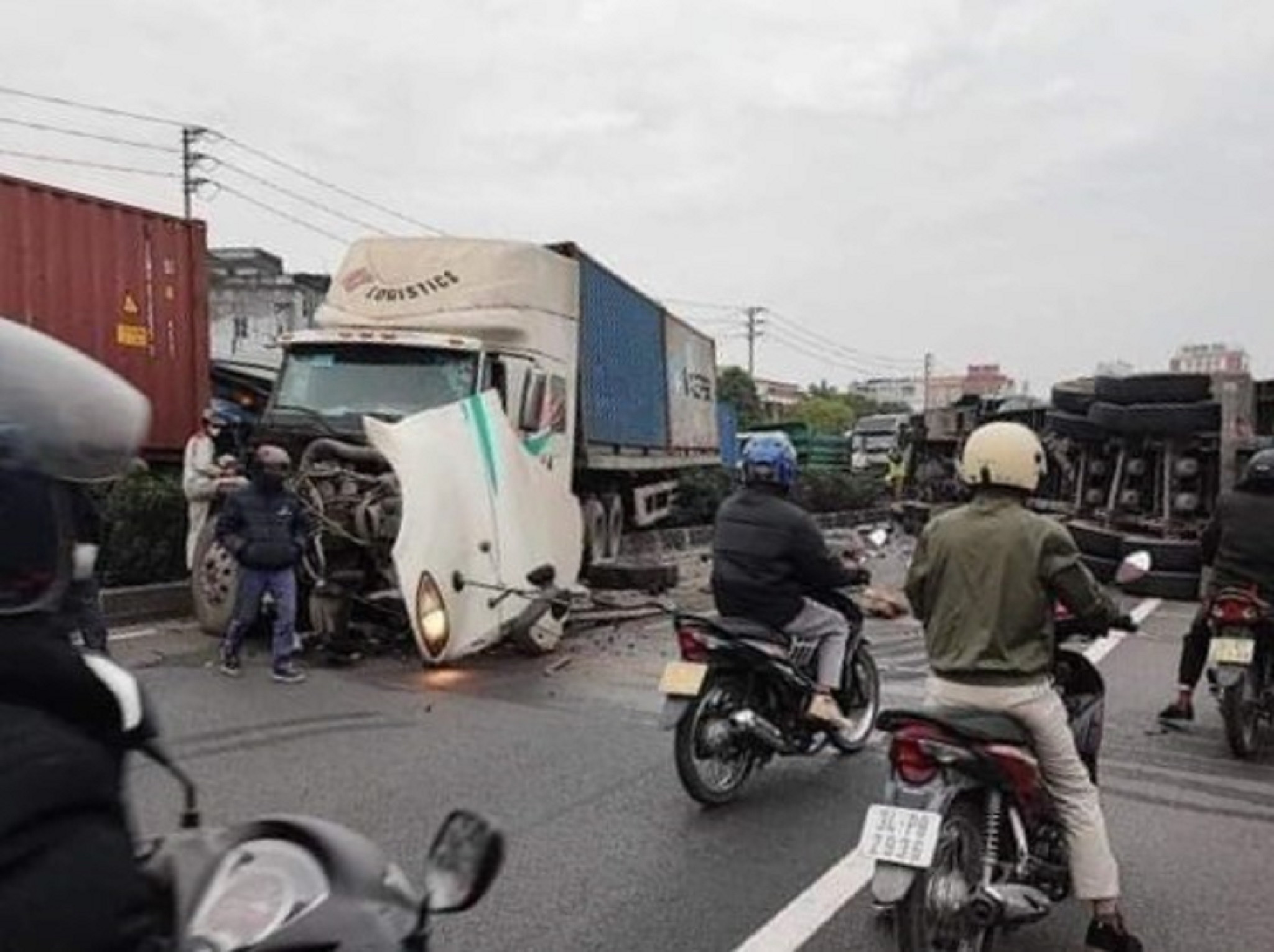 Thời điểm xảy ra tai nạn, xe container mang BKS 34H- 006.XX kéo theo rơ-mooc di chuyển theo hướng Hải Phòng - Hà Nội thì va chạm với 3 xe ô tô đi cùng chiều, gồm xe container BKS 15H-003.XX, xe container BKS 15C- 255.XX và xe tải 34C- 330.XX.
