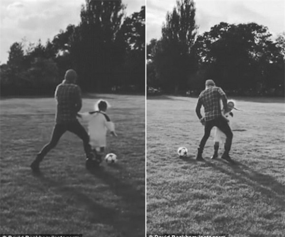 David Beckham tự hào khoe con gái cưng học đá bóng rất giỏi.