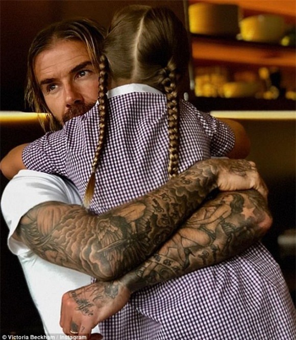 Hình ảnh David Beckham ôm con gái cưng Harper được Victoria chia sẻ trên trang Instagram.