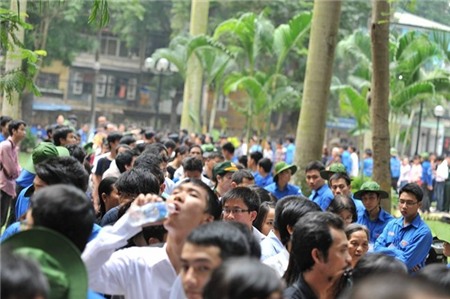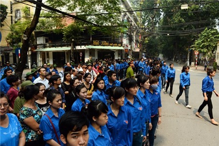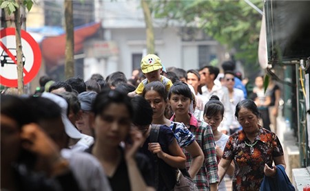 - Hàng người đã nối sang tới Trần Hưng Đạo. Ảnh: Hoàng Thành.