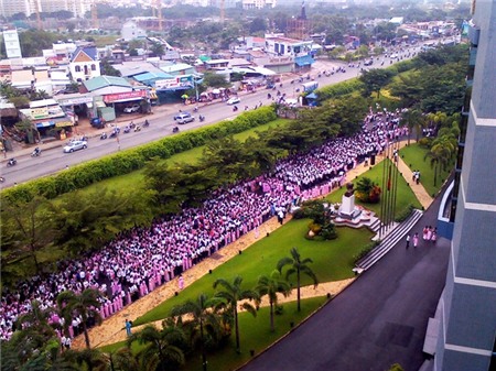 Trường đại học Tôn Đức Thắng (Tp. HCM) sáng nay tổ chức lễ viếng Đại tướng Võ Nguyên Giáp (ảnh do bạn đọc Lê Hoàng gửi qua email)