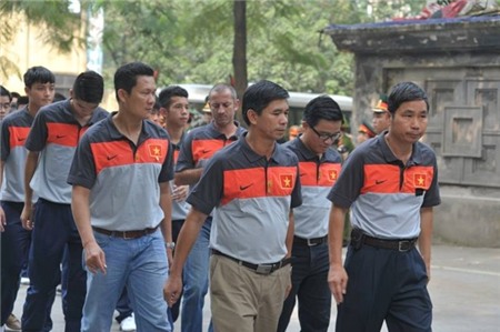 - Đội U19 cùng trưởng đoàn Dương Nghiệp Khôi tại Nhà tang lễ Quốc gia.